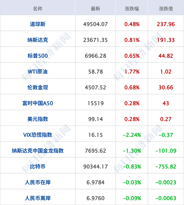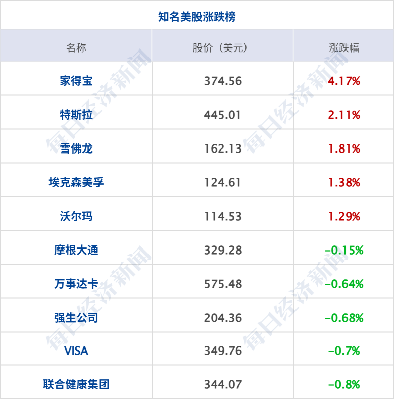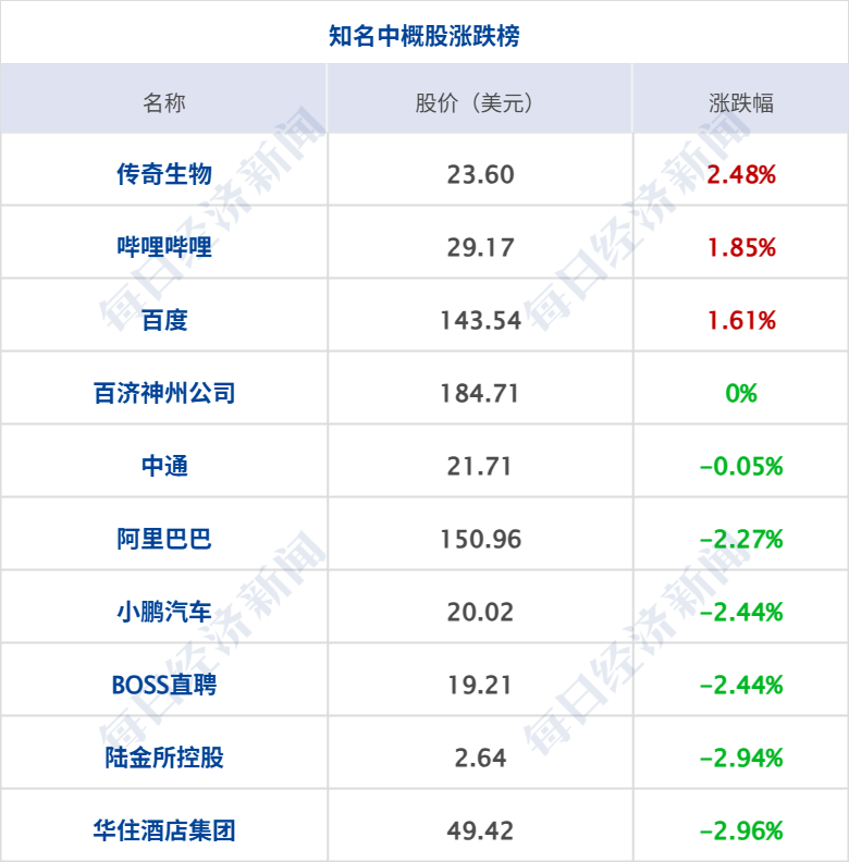 美股三大指数集体收涨,纳指涨0.81%,标普500指数涨0.65%,道指涨0.48%,其中,道指、标普500指数均创历史收盘新高;英特尔涨超10%,创9月以来最大单日涨幅,创2024年3月以来新高;特斯拉涨超2%,Meta涨逾1%,苹果、微软、谷歌、亚马逊小幅上涨;奈飞跌超1%,英伟达小幅下跌,苹果结束日线7连跌。中概股涨跌不一,纳斯达克中国金龙指数跌1.3%,亚朵跌超5%,奇富科技跌逾3%,小鹏汽车、唯品会等跌超2%,贝壳、携程网等跌超1%;霸王茶姬、传奇生物涨超2%,哔哩哔哩、百度等涨逾1%,金山云、名创优品等小幅上涨。