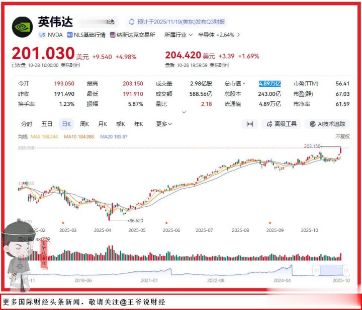 王爷说财经讯:英伟达市值狂飙!就在刚刚融丰配资,2025年10月29日,英伟达市值正式突破4.94万亿美元,离5万亿仅一步之遥!